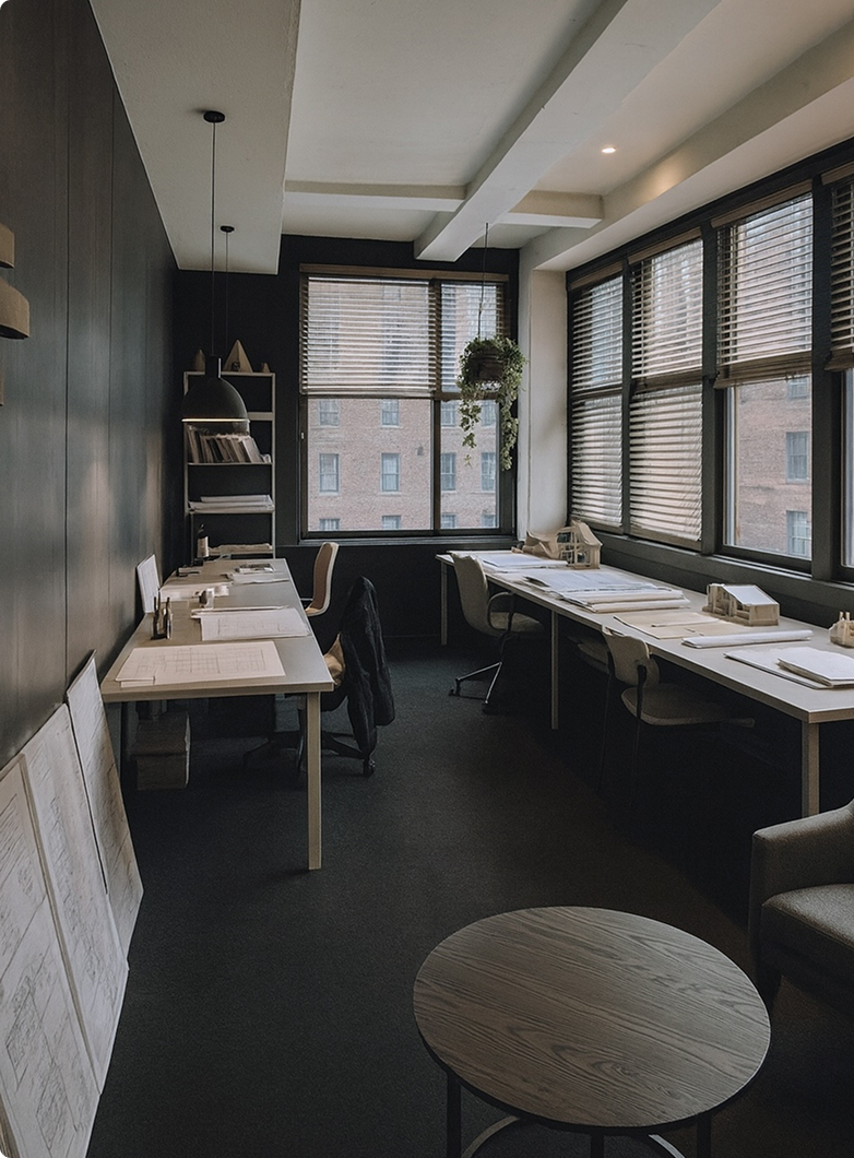 私たちが大切にしているのは、人と人が心地よい距離感で関われる場です。近すぎず、遠すぎない。話しやすさと集中しやすさ、そのどちらも両立できるように。オフィスという”器”を通して、チームの関係性がやわらかく変わっていく。その変化の積み重ねによる、“つながり”が新しいアイデアを生み出す原動力になると信じています。空間造りを通じて、人がより自分らしく働ける未来をデザインします。
