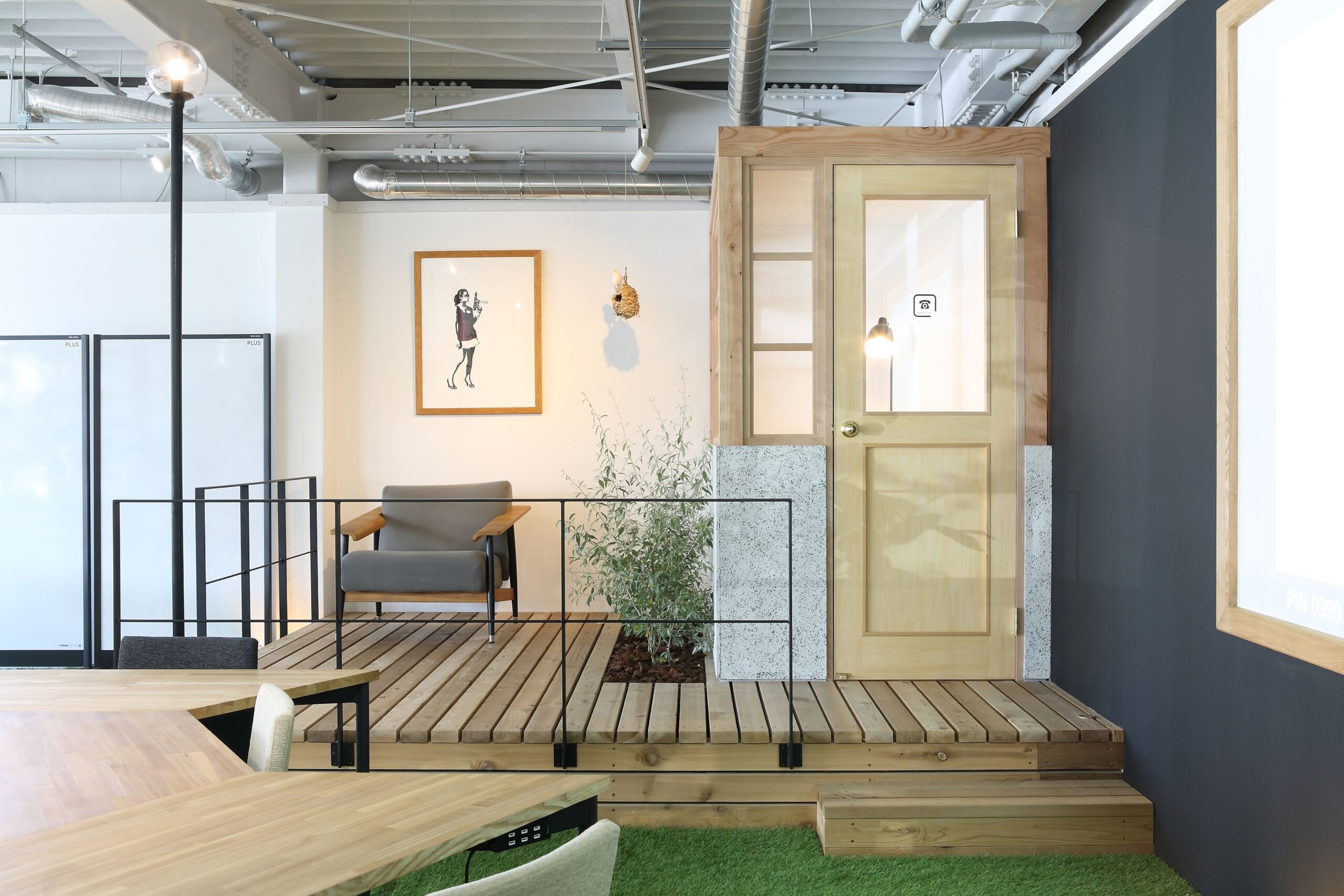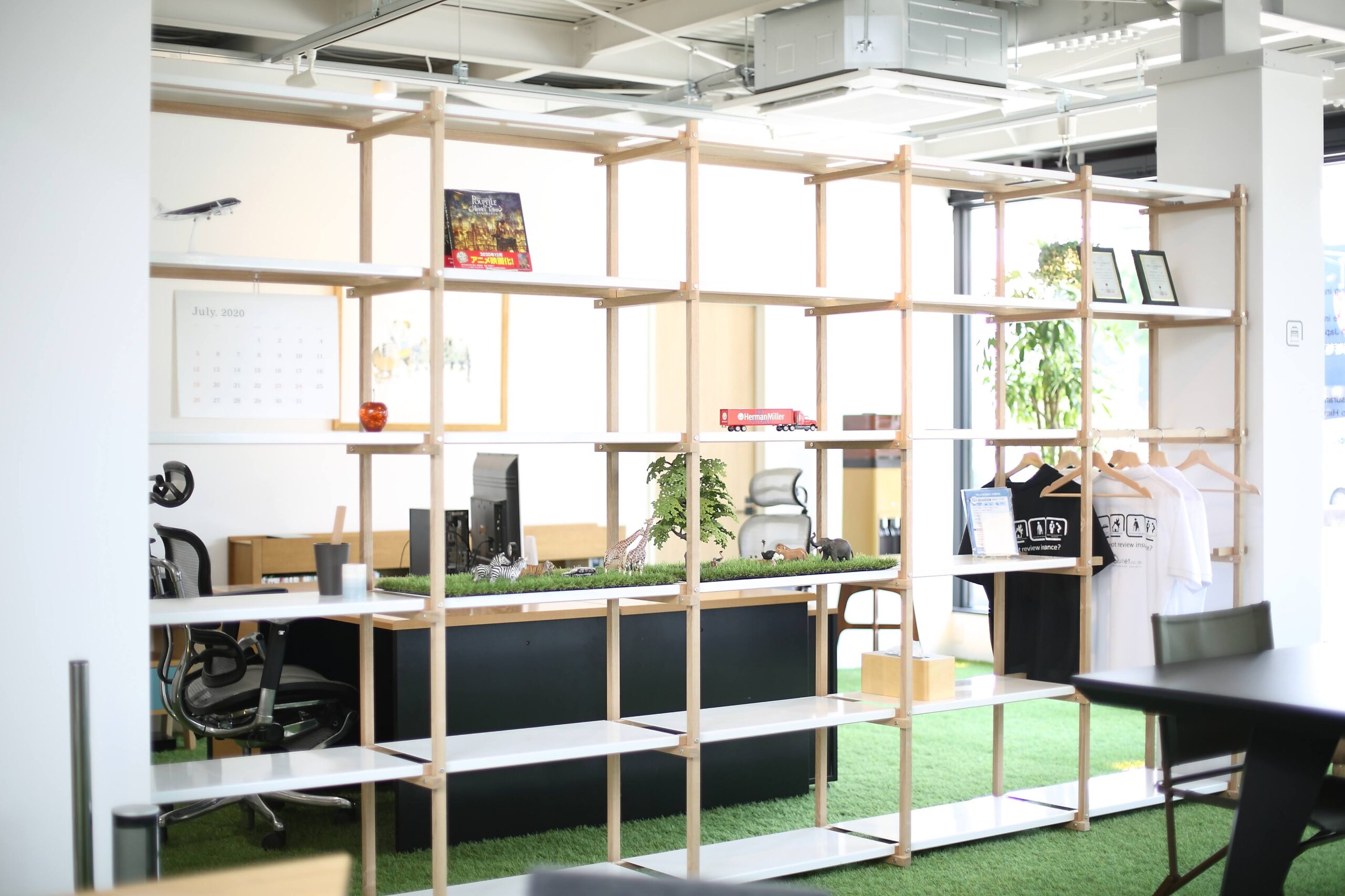 コンビニだった建物をリノベーションした保健代理店。「公園」のような空間で、リラックスして働ける空間を。そんな相談から始まったプロジェクト。